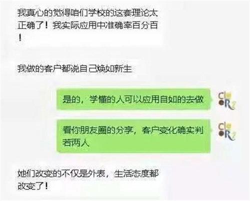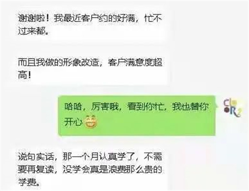 “我最近客戶約好滿,都忙不過來,而且我做的形象改造,客戶滿意度超高。”“我真心覺得咱們學校的這套理論太正確了,我實際應用中百分百準確!”